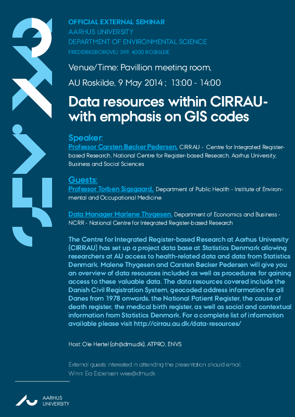 Speaker: Professor Carsten Bøcker Pedersen, CIRRAU - Centre for Integrated Registerbased Research, National Centre for Register-based Research, Aarhus University.